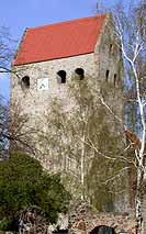 Eine weitere Besonderheit ist, dass man bei genauer Betrachtung der Kirche zwei Bauphasen bzw. Bautechniken erkennt. Das Schiff, der Chor und die Apsis zeugen von hoher Baukunst, die zum Teil einseitig behauenen Feldsteine sind in ordentlichen, geraden und lotrechten Lagen vermauert. Der Turm (das Westwerk) hingegen weist auf eine laienhafte, bäuerliche Bautechnik hin, die unbehauenen Feldsteine sind in unregelmäßigen Schichten, nicht lotrecht vermauert. Schiff, Chor und Apsis gehören somit wohl zu einer älteren Bauphase, welche von den Baumeistern des Prämonstratenser Ordens ausgeführt wurde. Der Turm hingegen wurde wohl von ortsansässigen Handwerkern oder Bauern errichtet. Dieser "bäuerliche" Baustil mit unregelmäßig geschichteten, unbehauenen Feldsteinen findet sich auch in einigen Wohnhäusern unseres Dorfes wieder, wie z.B. in den Häusern der Fam. Brandt, Kluge und M. Schwenk. Wahrscheinlich stammen diese Gebäude aus dem 17. und 18. Jahrhundert. Das zeigt, dass der Turm, wie wir ihn heute sehen, viel jünger ist als das Schiff. Man nimmt an, er stammt aus dem 14. Jahrhundert. Jüngste Untersuchungen an der Kirche ergaben, dass das gesamte Bauwerk im Dreißigjährigen Krieg stark beschädigt wurde, der Dachstuhl war zerstört (verbrannt). Also könnte es auch möglich sein, dass in diesem schrecklichen Krieg ein eventuell aus der Zeit der ersten Bauphase stammender Turm zerstört wurde und der heutige Turm erst nach diesem Krieg errichtet wurde, ähnlich wie die vorgenannten Häuser.